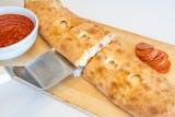 Savor the bold flavors of this Stromboli, packed with marinated chicken, a kick of hot sauce, melty mozzarella, and creamy Copper Sharp American cheese. Wrapped in a golden crust and served with a side of tangy blue cheese for dipping, it's the ultimate indulgence with a spicy twist.
